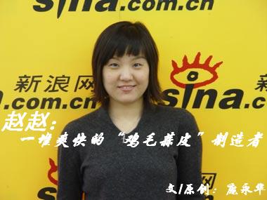 赵赵:一堆爽快的“鸡毛蒜皮”制造者 入选点评:赵赵,这个做唱片多年的带着蔫坏的女人,从她在各种零星的报刊专栏摆弄她的“鸡毛蒜皮”开始,到现在成堆成堆地排弄那些吃喝拉撒的市井生活,闹腾得大家跟着她直接喊爽!读她的文字,我们不仅能够感受到她的讥诮和刻薄的蔫坏之外,也能体会到那与众不同的忧伤和宿命。好在她已为人妻,在闹腾之余也给了大家一点小女人悠哉的幸福劲儿。她的吃喝拉撒,就是文字;她的文字,就是生活…… 作家简介:赵赵,北京人。曾做过秘书、文案、企宣、电视编导、编辑,现为自由撰稿人,为多家报刊撰稿人。已出版《命犯桃花》、《花不棱登》、《内衣》、《动什么别动感情》等多部作品。 文字魅力:酸甜苦辣,五味俱全。 新浪博客:管着吗(听听,这蒜味多浓!)