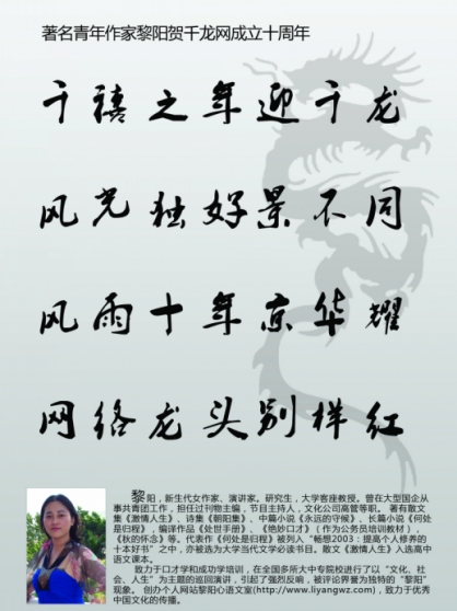 应千龙网之邀,即兴作诗——《情系千龙》,送上对千龙网十岁生日的祝福,感谢千龙网的朋友们长期对我的关心和支持!同时,热烈祝贺千龙网京华论坛《京华》杂志的创刊。这不是一份平凡的杂志,这不是一些简单元素的组合出版。它是思想碰撞的结晶,它是智慧闪烁的火花,它是京华的网友们用自己的文字和画面描述着自己身边的京华烟云。